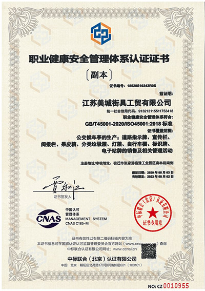 職業(yè)健康安全管理體系認(rèn)證證書