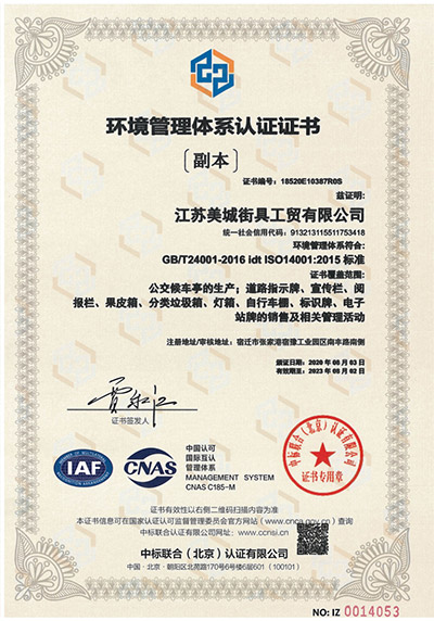環(huán)境管理體系認(rèn)證證書
